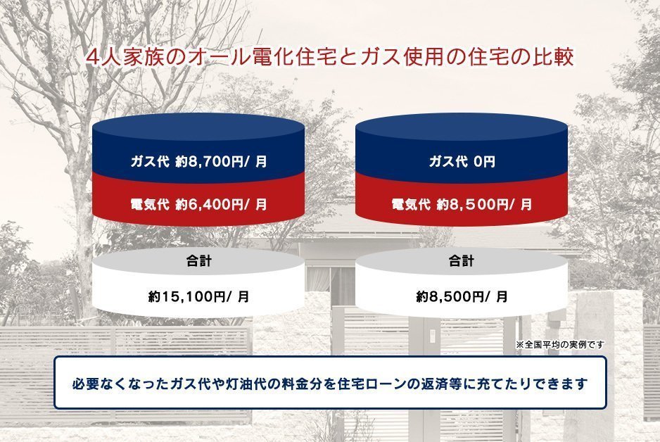 ガス料金がゼロになるので、経済的です。太陽光パネルなどと組み合わせれば、より効率的にエネルギーを使えるでしょう。